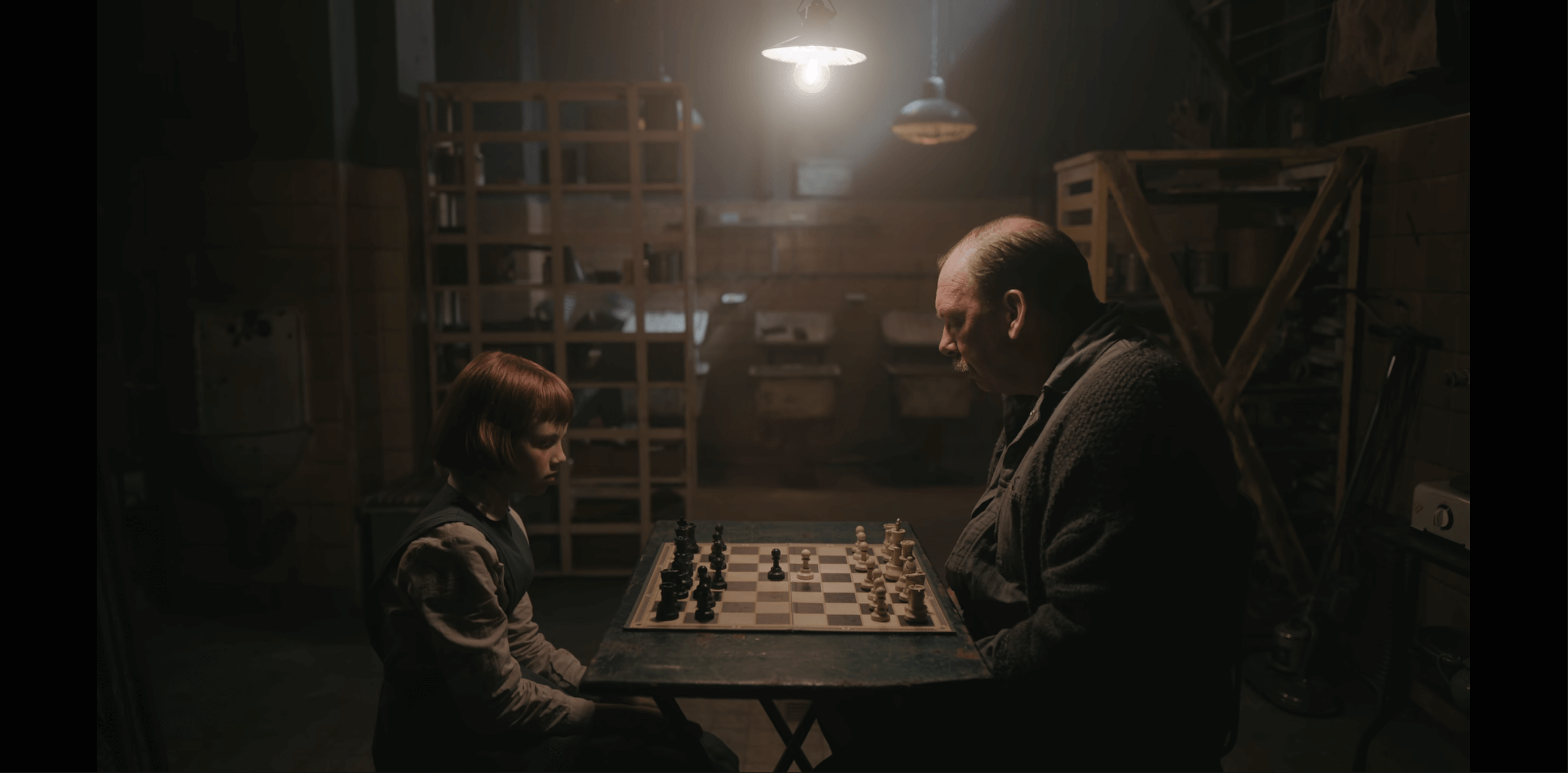 어린시절 부모를 잃고 고아원에 입소하게된 주인공이 고아원 청소부의 도움으로 체스의 기초를 배우며 체스에 눈뜨게 되죠.