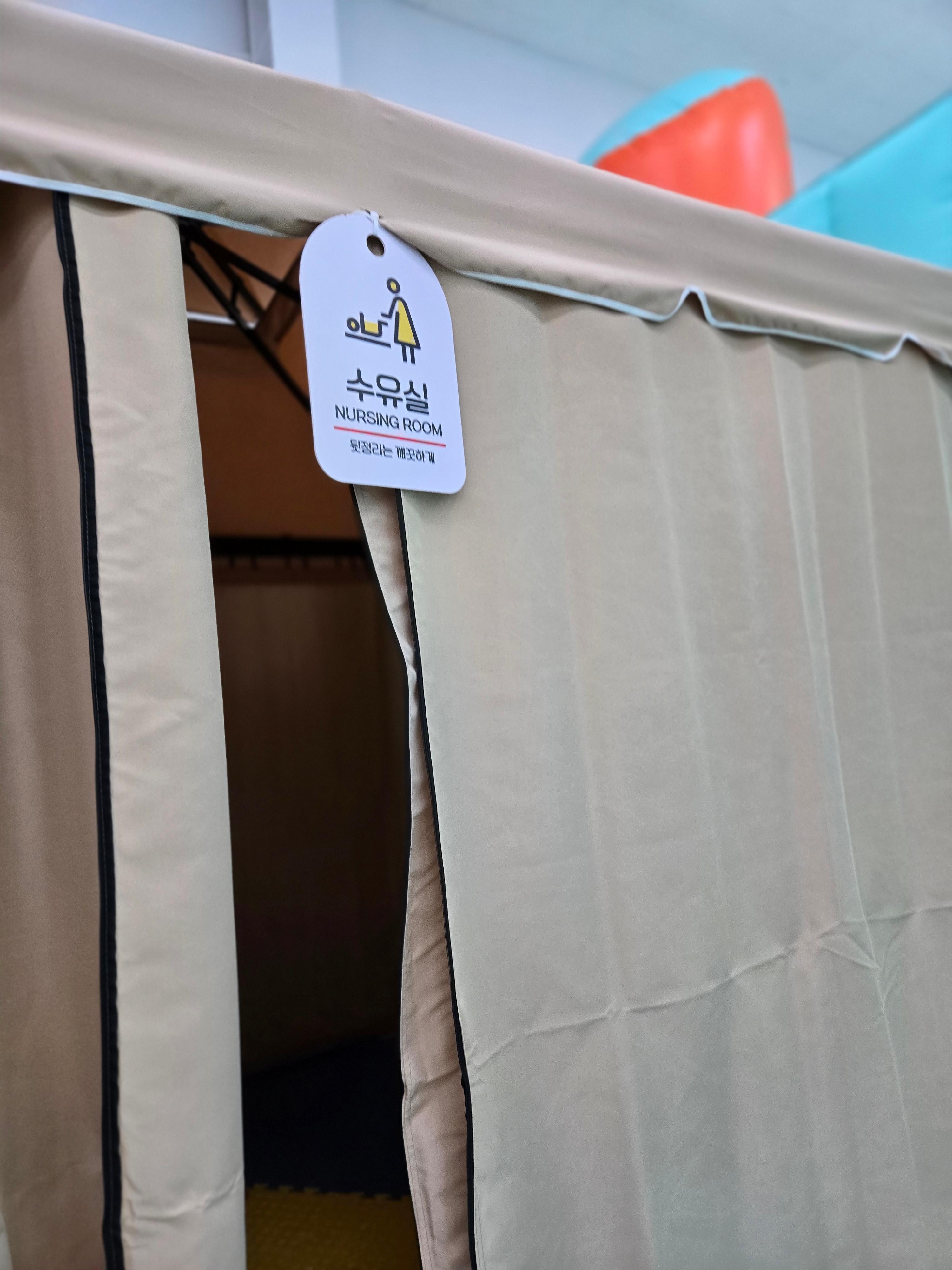 수유실은 텐트 같은 곳 안에 저렇게 캠핑테이블 하나와 의자 하나정도만 놓여있었어요. ㅋㅋ
