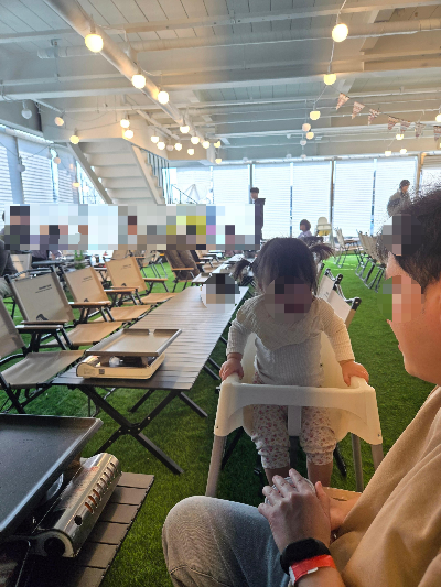 텐트자리를 예약했는데 16개월짜리 아기 기저귀 갈고 아이들 가끔 와서 쉬고 보드게임 하는 정도로 잠깐 이용하는 정도여서 나중에 좀 더 가성비 있게 가려면 텐트자리는 굳이 예약 안 하고 테이블을 자유롭게 이용하는 것도 좋은 방법일 것 같았습니다.
