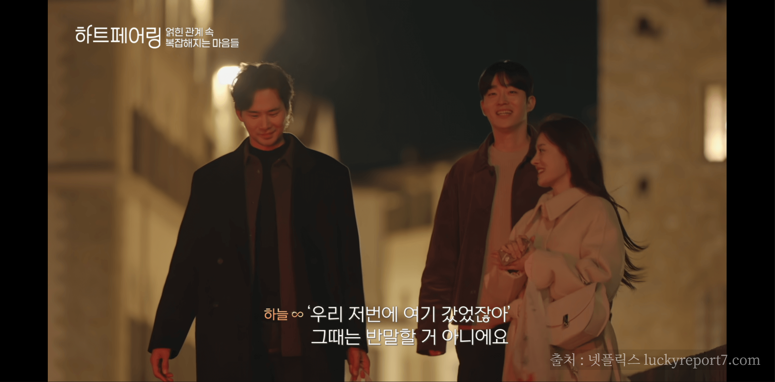 전 20대때 유럽으로 단체 배낭여행을 간 적 있었는데 그때 처음 본 20명의 사람들과 공항에서 마주하고 하루 만에 친해져서 이렇게 나란히 유럽거리를 서로 챙겨주며 걷기도 하고, 이어폰도 나눠 끼고 음악을 듣고 했던 추억이 새록새록 생각나더라고요. 그때 나눠 들었던 음악이 keane의 somewhere only we know였는데 한동안 유럽앓이를 하며 반복해서 들었던 기억이 나서 그런지 전 특히 제연과 지민이 미켈란젤로 광장 데이트에서 거리에서 울려 퍼졌던 sting의 shape of my heart 나올 때 너무 인상 깊었어요.